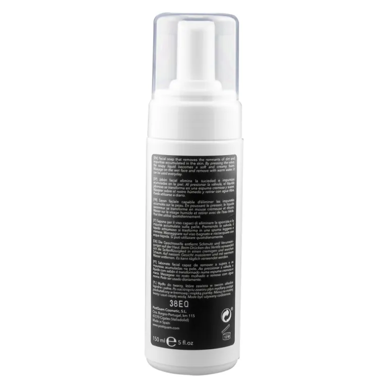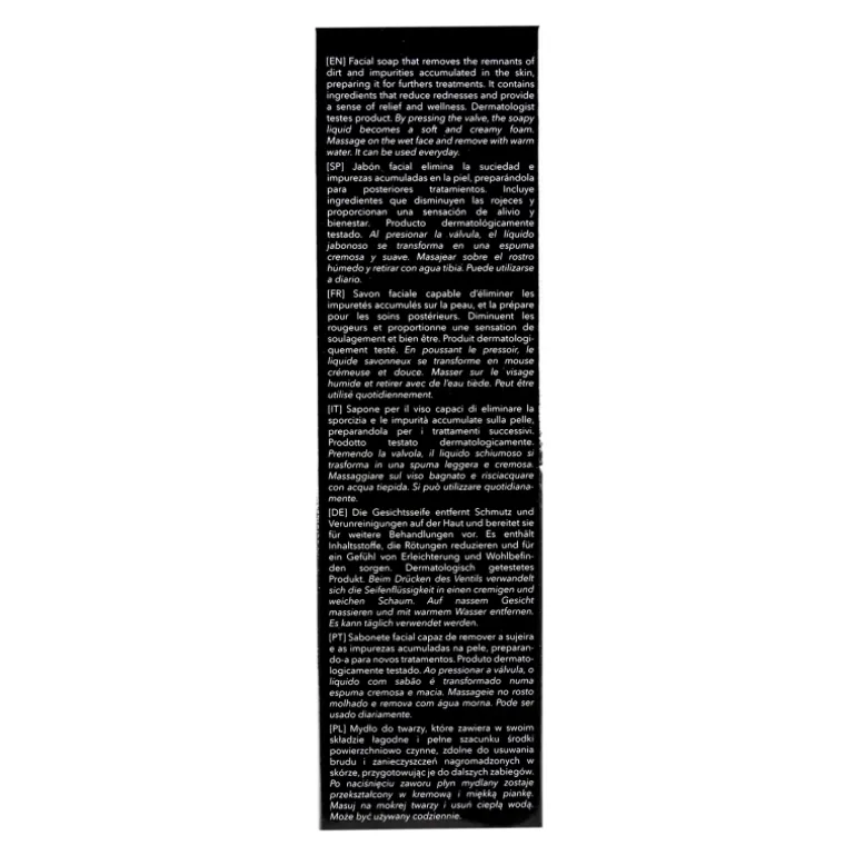 Jabón facial elimina la suciedad e impurezas acumuladas en la piel, preparándola para posteriores tratamientos. Incluye ingredientes que disminuyen las rojeces y proporcionan una sensación de alivio y bienestar. Producto dermatológicamente testado. Al presionar la válvula, el líquido jabonoso se transforma en una espuma cremosa y suave.