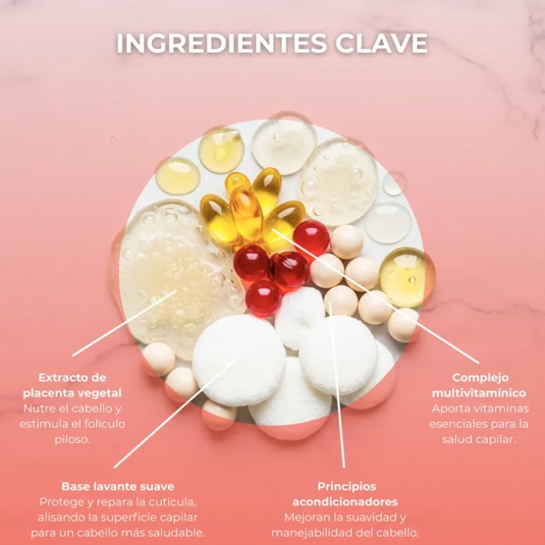 – Principios acondicio nadores: Acondicionan ligeramente el cabello, dejándolo más suave y facilitando su desenredo.