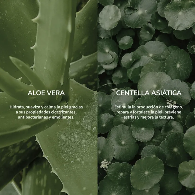 Su principal activo es el Aloe Vera, una planta utilizada popularmente por sus propiedades hidratantes, suavizantes, refrescantes y protectoras de la epidermis. Contiene muchas vitaminas y minerales vitales para el cuidado de nuestra piel. Actúa como excelente dermoprotector ejerciendo sobre la piel una profunda acción hidratante. Oxigena, suaviza, da brillo y favorece la regeneración cutánea.