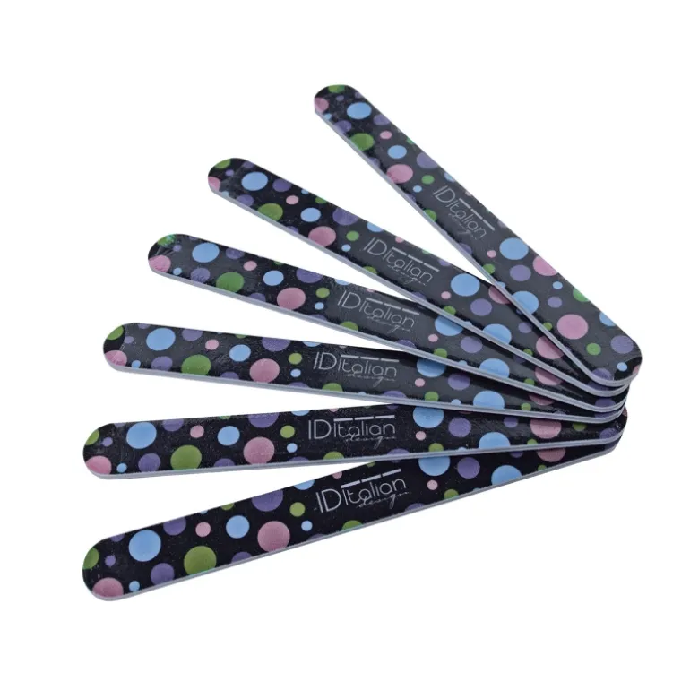 Expositor con 48 limas acolchadas profesionales de manicura. Con un diseño atractivo y original, están indicadas para acortar, dar forma y pulir las uñas. Con un tamaño de 17,8 x 2 x 0,4cm, y gracias a su forma y material acolchado, se adaptan muy bien a la superficie de la uña y llega hasta las zonas más difíciles.