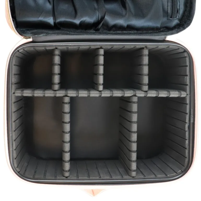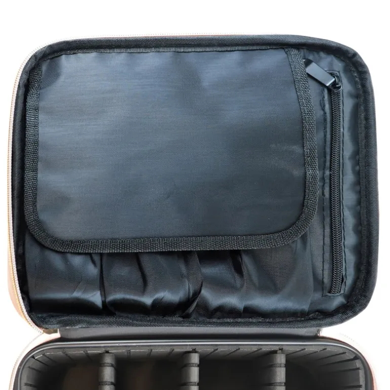 Experimenta la combinación perfecta de estilo y funcionalidad con nuestro exclusivo neceser de maquillaje, ideal tanto para el uso diario como para el entorno profesional. Su cuerpo rígido, ligero y robusto ofrece una protección sin igual para tus productos de belleza, mientras que el atractivo color rosa pastel agrega un toque de elegancia.
