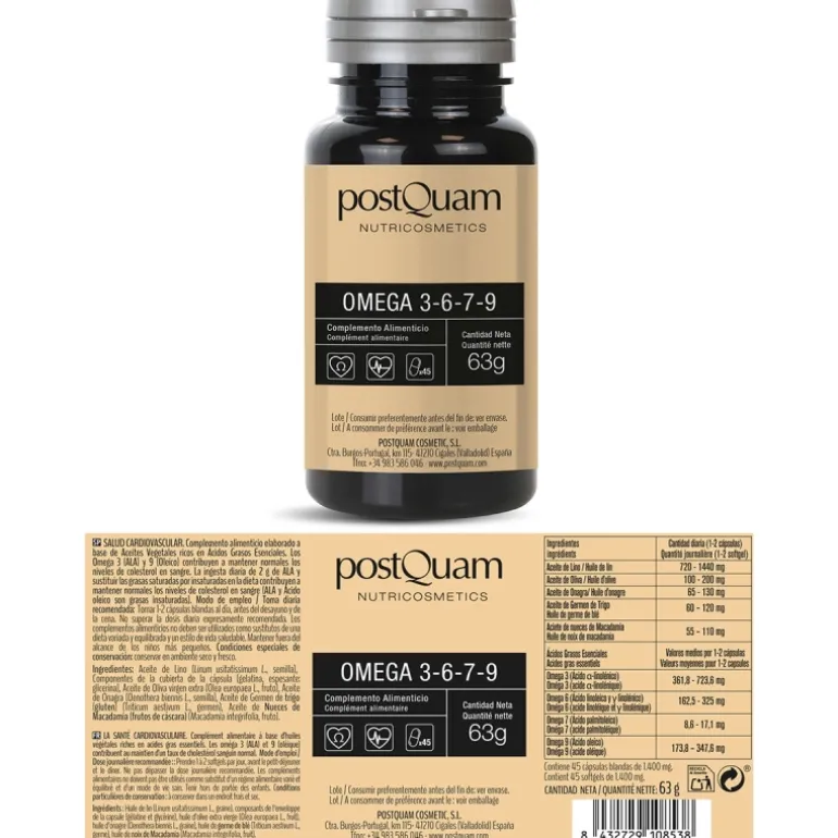 SALUD CARDIOVASCULAR. Complemento alimenticio elaborado a base de Aceites Vegetales ricos en Ácidos Grasos Esenciales. Los Omega 3 (ALA) y 9 (Oleico) contribuyen a mantener normales los niveles de colesterol en sangre. La ingesta diaria de 2 g de ALA y sustituir las grasas saturadas por insaturadas en la dieta contribuyen a mantener normales los niveles de colesterol en sangre (ALA y Ácido oleico son grasas insaturadas).