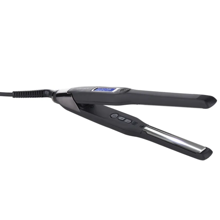Cuenta con una pantalla LCD donde indica la temperatura que es variables de 80 a 230ºC. Gracias a la memoria interna incorporada regresa al último ajuste de temperatura automáticamente al encender la plancha. Calentamiento cerámico ultrarápido. Cable giratorio de 2,6m. Voltaje universal y Apagado automático.