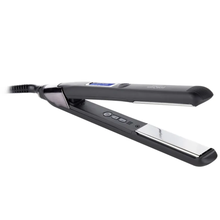 Cuenta con una pantalla LCD donde indica la temperatura que es variables de 80 a 230ºC. Gracias a la memoria interna incorporada regresa al último ajuste de temperatura automáticamente al encender la plancha. Calentamiento cerámico ultrarápido. Cable giratorio de 2,6m. Voltaje universal y Apagado automático.