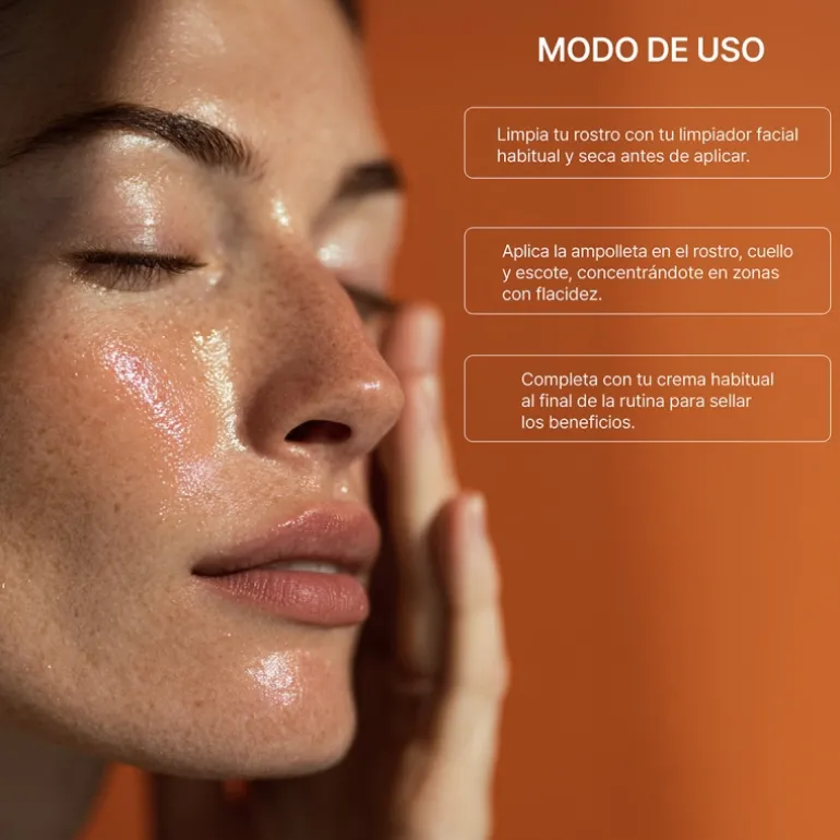 · Con la piel del rostro limpia y seca, verter el contenido de la ampolla sobre las manos.