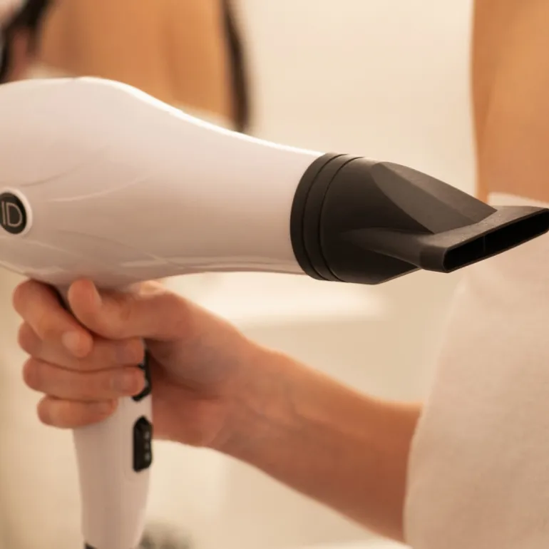Potente secador con 220W. Motor AC profesional de alto rendimiento, Cuenta con 2 velocidades y 3 modos de calor, botón de aire frío, 1 boquilla profesional, ligero, agarre ergonómico, y protección frente al sobrecalentamiento.