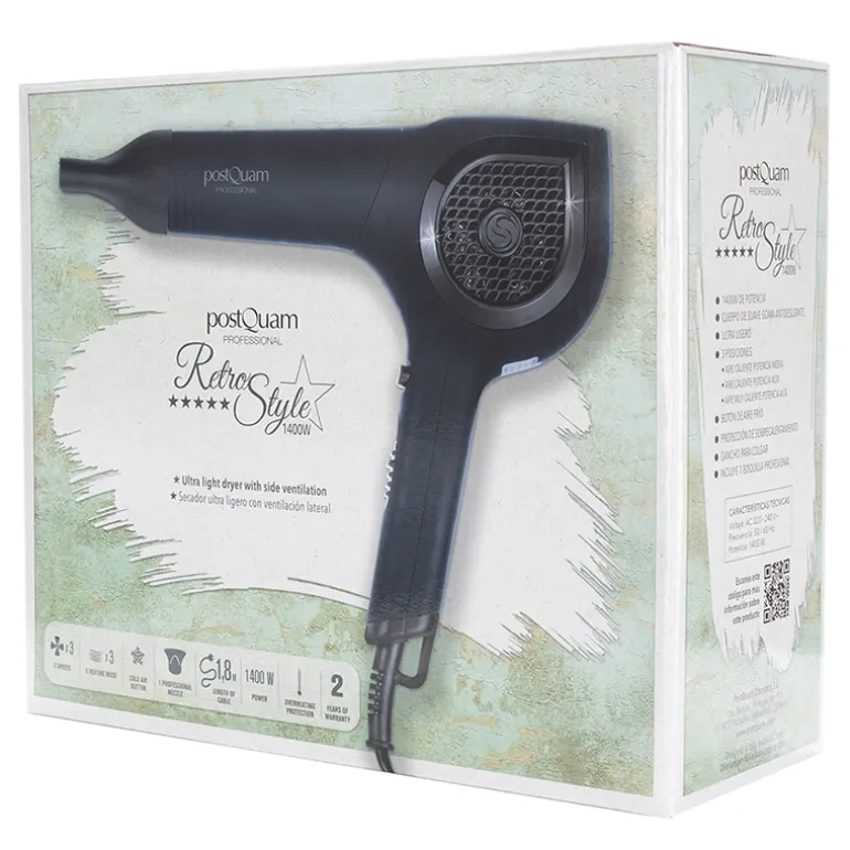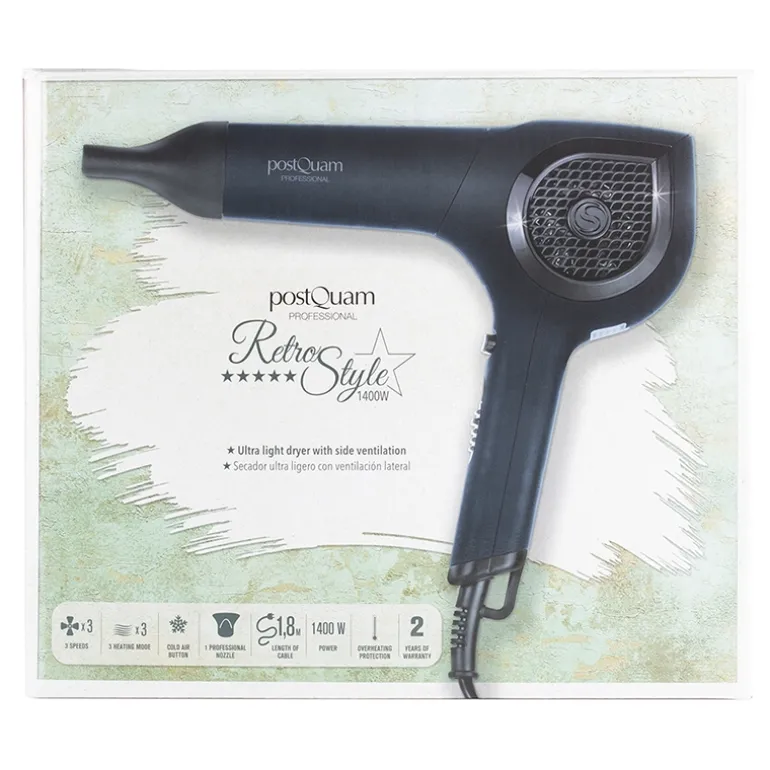 PostQuam saca al mercado su secador más singular. Retro Style tiene un diseño muy característico, distinto a lo que estamos acostumbrados. Es ultraligero que junto a su tacto engomado y su forma ergonómica facilitan el trabajo de secado sin cargar los brazos.