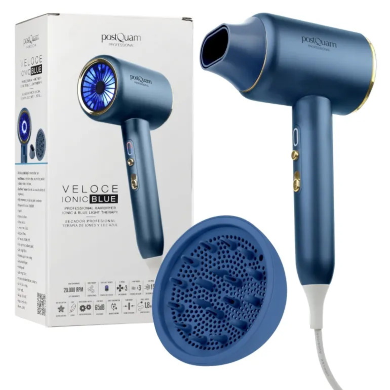 Disfruta de una experiencia de secado incomparable con el secador de pelo Veloce Ionic Blue. Este innovador dispositivo representa una verdadera revolución en el cuidado del cabello, ideal para quienes desean obtener un acabado perfecto en poco tiempo. Combina tecnología avanzada con un diseño ligero y elegante, en un equipo compacto y muy fácil de manejar. Su diseño ergonómico asegura que puedas usarlo cómodamente por largos periodos, y su peso ultraligero lo convierte en una herramienta práctica tanto para uso personal como profesional.