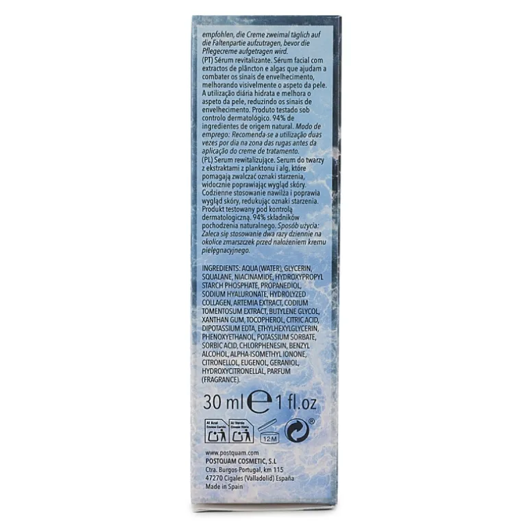 Sérum facial con extractos de plancton y algas que contribuyen a combatir las señales del envejecimiento, mejorando visiblemente el aspecto de la piel. Su formulación incluye ingredientes altamente eficaces como el ácido hialurónico, la vitamina B3 y el colágeno. Su uso diario hidrata y mejora el aspecto de la piel reduciendo los signos de la edad.