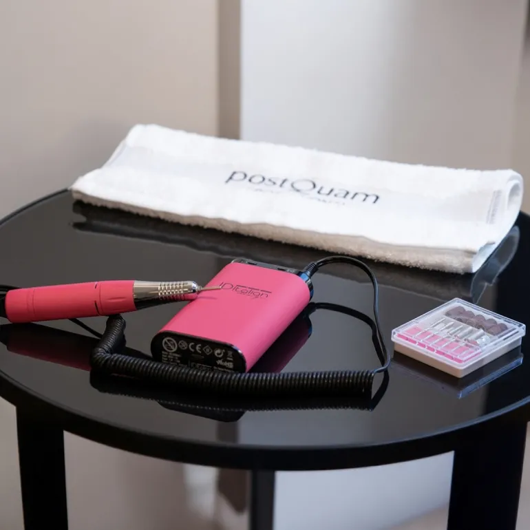 Revolucione su experiencia de manicura y pedicura con nuestro torno portátil de uso profesional, diseñado para ofrecer la máxima versatilidad en cualquier lugar. Este dispositivo inalámbrico combina una estética elegante con un diseño compacto, lo que lo convierte en el compañero ideal para estilistas en movimiento. La superficie de goma suave al tacto ofrece una experiencia cómoda y agradable.