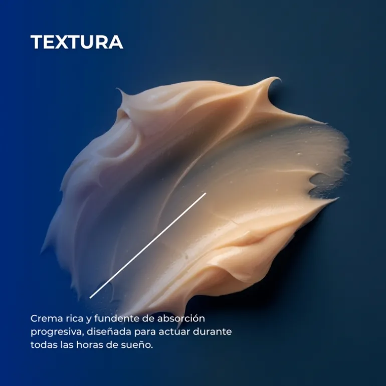 Esta crema nutritiva de noche aprovecha el estado de reposo natural de la piel para reajustar el metabolismo celular e inducir la actividad de los genes responsables de la renovación de la piel durante el sueño. Permite reequilibrar los procesos d