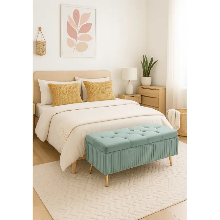 Pensado para múltiples usos, este banco otomano es ideal para colocar a los pies de la cama, como un anexo al sofá, reposapiés, en recepciones, tiendas y más. La tapa abatible revela un amplio espacio de almacenamiento interior, ofreciendo una solución práctica y estética para mantener tus pertenencias ordenadas y fuera de la vista. Este banco no solo es un complemento llamativo para tu interior, sino también una solución funcional para el almacenamiento.