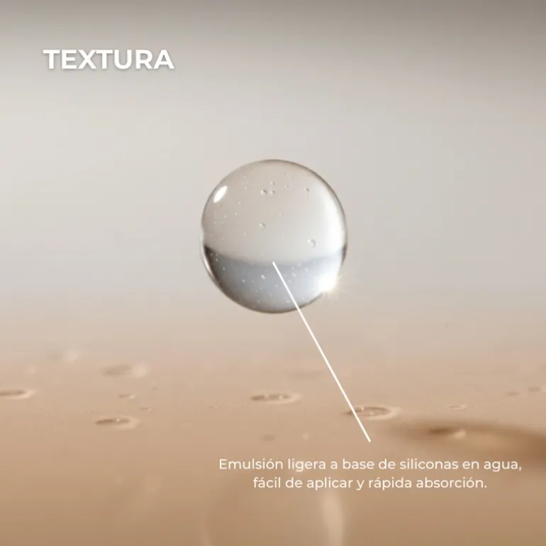 Emulsión de siliconas al agua que repara las puntas abiertas y alisa la cutícula capilar, aportando mucho brillo al cabello. No engrasa el cabello.
