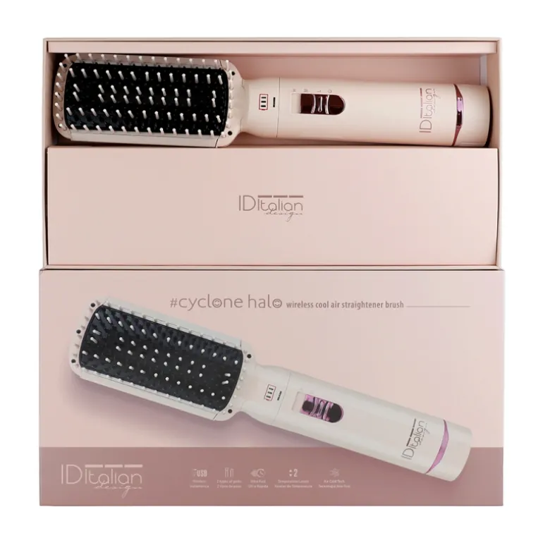 Descubre el poder de un alisado suave, rápido y sin esfuerzo con el Cyclone Halo AirBrush, el cepillo alisador inalámbrico que une tecnología, libertad de movimiento y el máximo respeto por tu cabello. Diseñado con la exclusiva tecnología HairCare, es ideal para quienes buscan un peinado perfecto sin renunciar al cuidado capilar.