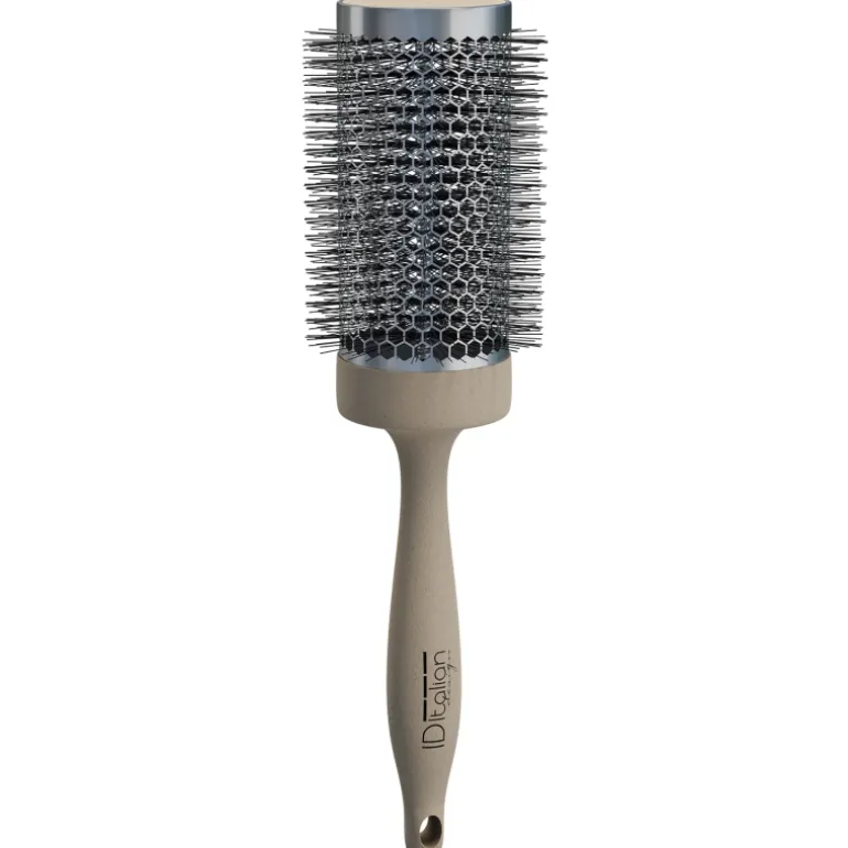 Diámetro 44mm. Mango en material de paja orgánica de trigo, cáscara de arroz, cilindro de aluminio revestido de cerámica y púas de plástico. El diseño con orificios en forma de panal distribuyen del calor uniformemente, cerdas de 20 mm, resistentes al calor 230ºC, antiadherentes, flexibles y duras. Bajo en carbono, favorable al medio ambiente, también puede ser reciclado y reutilizado.