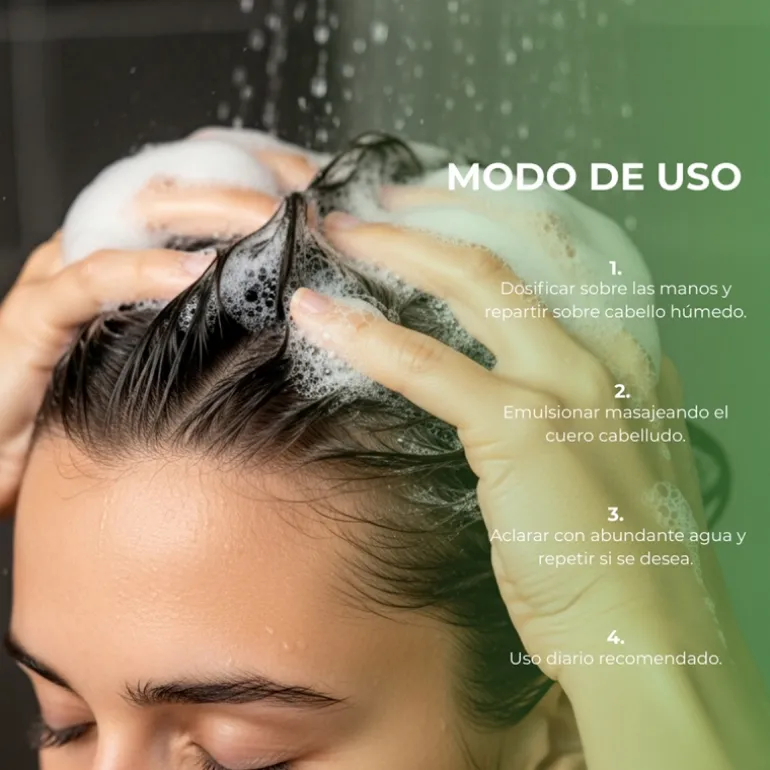 Dosificar sobre las manos y repartir uniformemente sobre el cabello húmedo. Emulsionar, masajeando el cuero cabelludo. Aclarar con abundante agua y repetir el proceso. Tras su utilización puede aplicarse la mascarilla Pure Organicals para cuero cabelludo sensible. Puede usarse a diario.