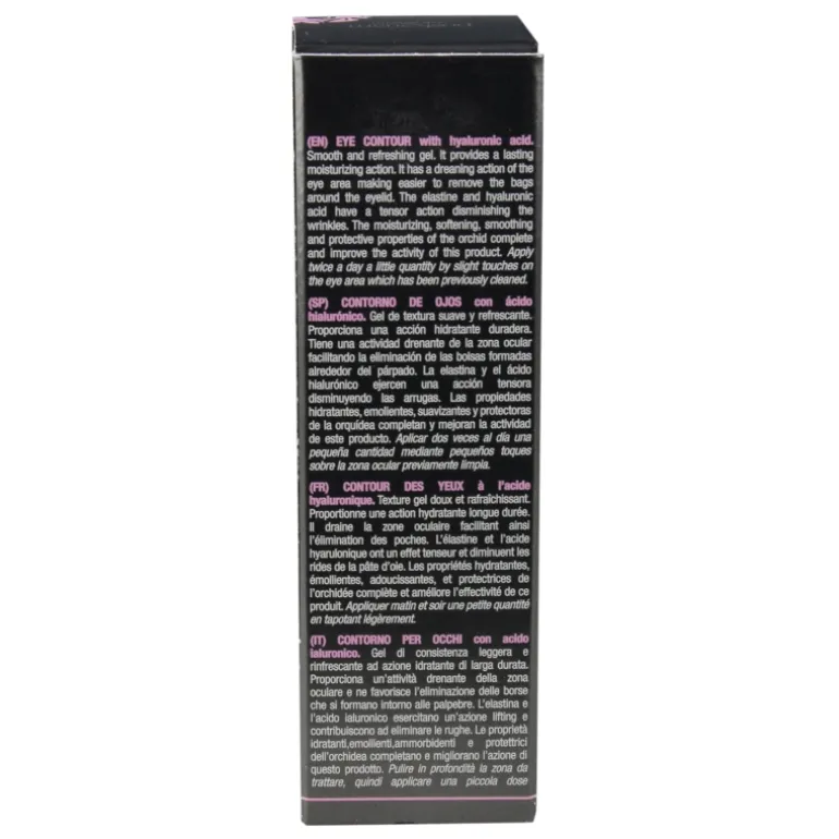 Gel de textura suave y refrescante con extracto de orquídea que proporciona una hidratación profunda y duradera de la zona ocular. La elastina y el ácido hialurónico ejercen una acción tensora disminuyendo visiblemente las arrugas y otros signos de fatiga. La piel recupera su elasticidad, más lisa y suave, devolviéndole la juventud a tu mirada.