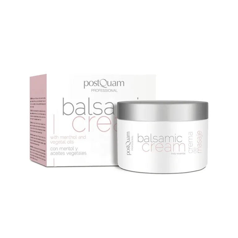 Crema corporal balsámica de acción relajante, con aceites esenciales y extractos de plantas vegetales, como la manteca de karité, aceite de germen de trigo, mentol y alcanfor que tiene la capacidad de restaurar la piel y proporcionar una sensación de alivio.