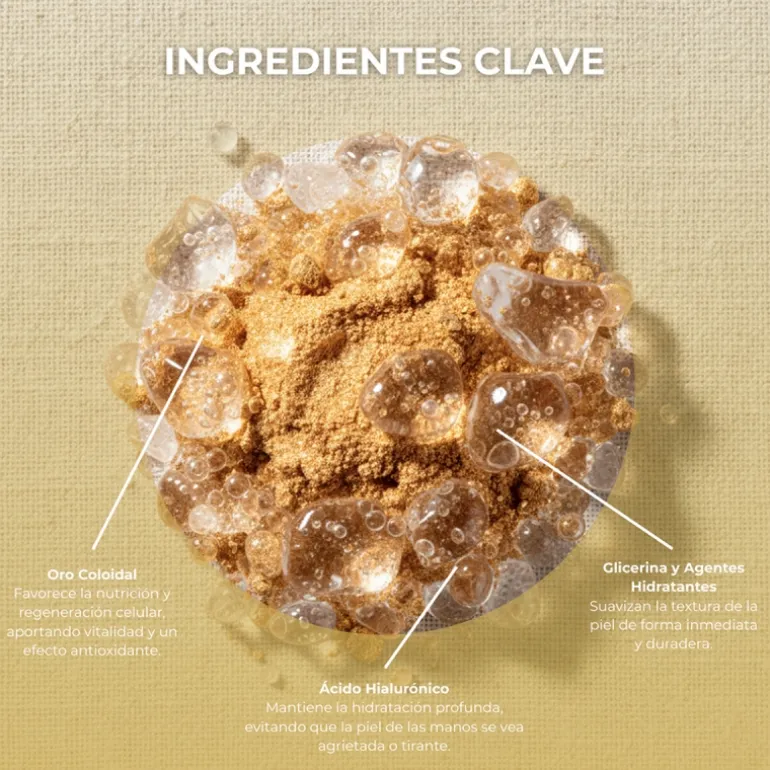 Emulsión fluida e hidratante cuya formulación ofrece a la piel una sensación de alivio y frescor inmediato. Su formulación rica en oro, vitamina A y ácido salicílico promueven una limpieza e hidratación profunda del poro. Nutre y regenera la piel de las manos protegiéndola frente a la sequedad y agentes externos. Se absorbe rápidamente sin dejar rastro.