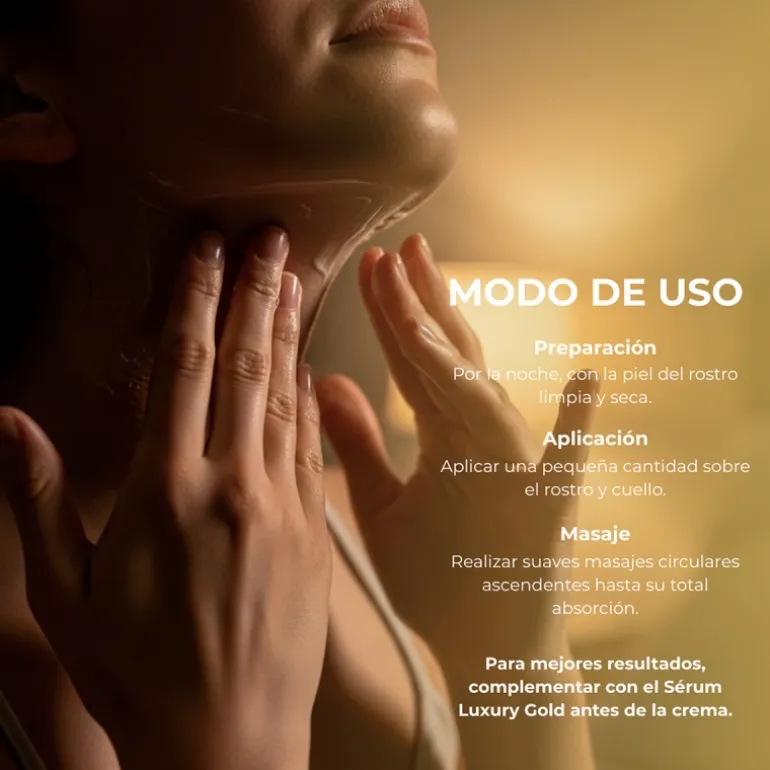 - Para una mayor eficacia utilizar previamente el Serum facial de Luxury Gold.
