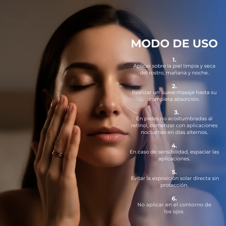 Para su aplicación, es conveniente empezar poco a poco para ir viendo la reacción de nuestra piel, para empezar se puede aplicar por la noche en días alternos, e ir aumentando su aplicación de forma progresiva. Hay que saber que el retinol puede sensibilizar la piel expuesta al sol por lo que cuídala siempre con una buena protección solar alta, sobre todo en la aplicación de tratamientos con retinol por la mañana.
