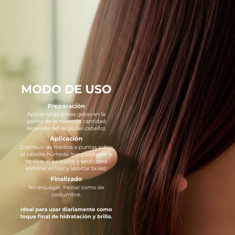 ACEITE DE ARGÁN: El aceite de argán es un aceite mundialmente conocido y muy apreciado en el mundo de la cosmética. Se obtiene a partir de la nuez del árbol de argán que durante siglos ha sido usada en el mediterráneo por sus propiedades cosméticas para obtener un cabello y piel saludables. Es rico en vitaminas, ácidos grasos, minerales y antioxidantes. Aporta brillo, suavidad y nutrición.