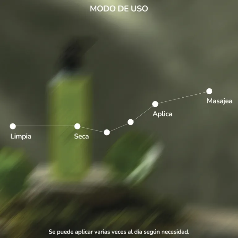 1. Aplicar generosamente en las zonas del cuerpo a tratar.
