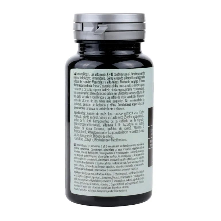 Complemento alimenticio elaborado a base de Especies Vegetales y Vitaminas. Las Vitaminas C y D contribuyen al funcionamiento normal del sistema inmunitario. No superar la dosis diaria expresamente recomendada. Los complementos alimenticios no deben ser utilizados como sustitutos de una dieta variada y equilibrada y un estilo de vida saludable. Mantener fuera del alcance de los niños. No recomendado en embarazo, periodoo de lactancia y niños. Condiciones especiales de conservación: conservar en ambiente seco y fresco.