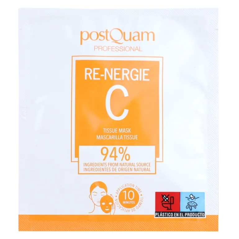 Mascarilla tissu de suave tejido impregnado en sérum de vitamina C estabilizada y ácido hialurónico, que devuelven la luminosidad a la piel, y difumina los signos de la edad. La piel aparece descansada, uniforme y tersa. Con extracto originario de naranja, posee una textura agradable y un fresco olor. Testado dermatológicamente. 94% ingredientes de origen natural.