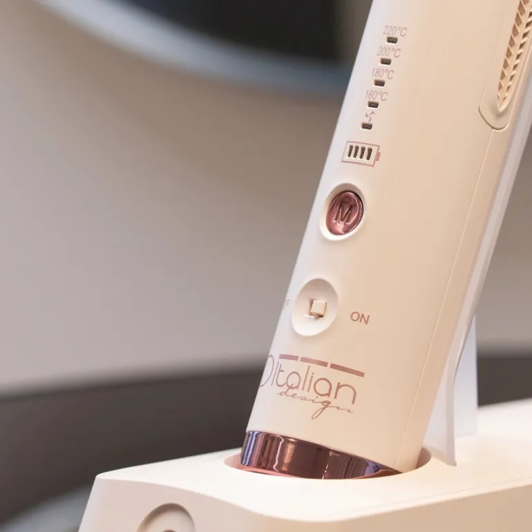 La tenacilla Cyclone Halo es mucho más que una tenacilla: es una herramienta de peinado 3 en 1 que alisa, riza y moldea con total libertad y el máximo respeto por tu cabello. Su diseño inalámbrico, elegante, delicado y minimalista la convierte en una pieza de belleza tan bonita como práctica.