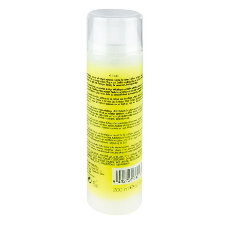 Fórmula profesional con proteínas de trigo, indicada para acabados naturales, definidos y elásticos, aporta hidratación al cabello y no deja residuos.
