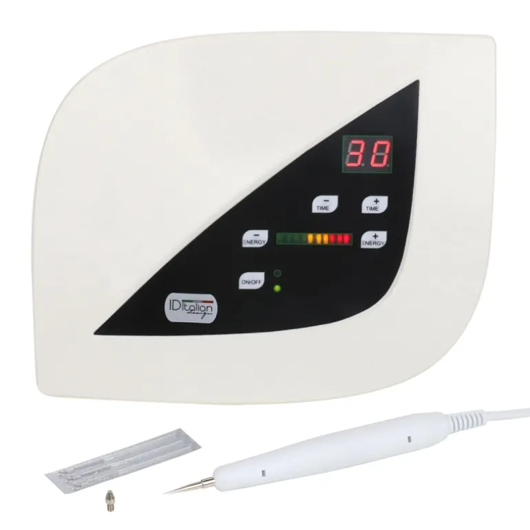 Equipo de belleza y cuidado facial de alta tecnología diseñado específicamente para la eliminación de manchas. Su diseño incluye un mango para agujas que se conecta al dispositivo principal. Al aplicarse sobre la piel, este dispositivo permite la eliminación eficiente de imperfecciones. Características: