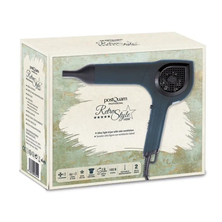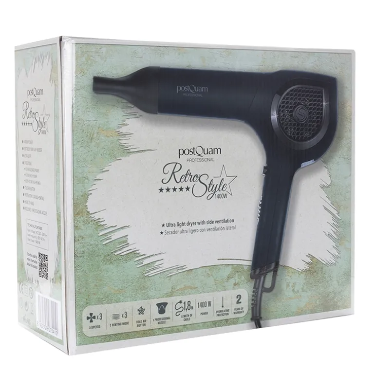 PostQuam saca al mercado su secador más singular. Retro Style tiene un diseño muy característico, distinto a lo que estamos acostumbrados. Es ultraligero que junto a su tacto engomado y su forma ergonómica facilitan el trabajo de secado sin cargar los brazos.