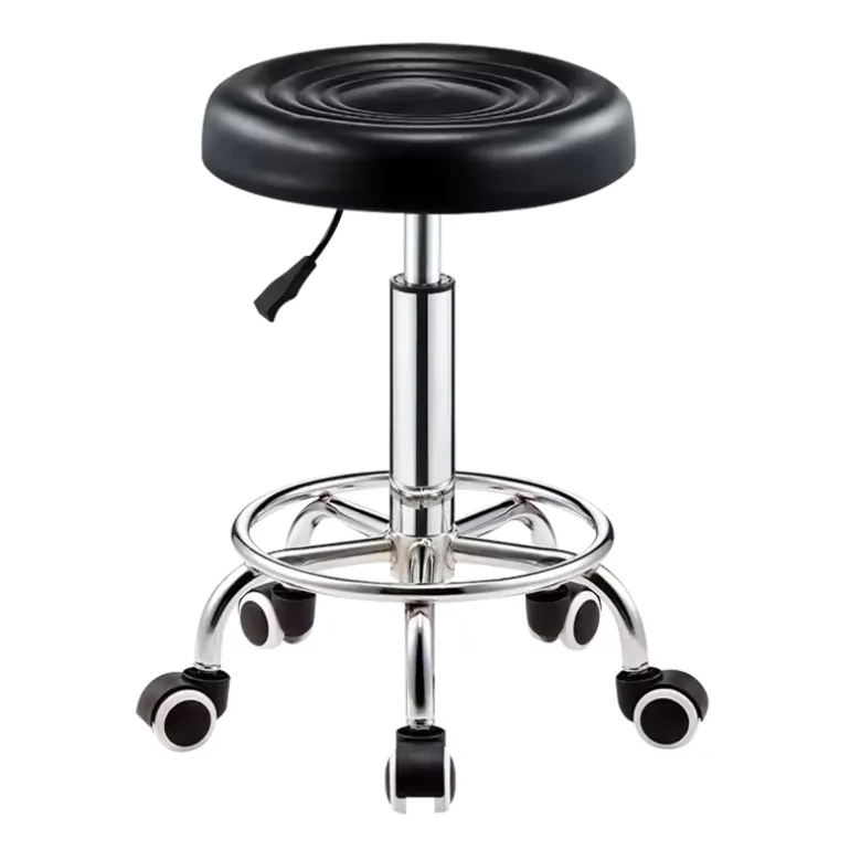 El asiento, cubierto de PU y acolchado con espuma de alta densidad, ofrece una comodidad excepcional para largas jornadas de trabajo. Además, cuenta con un sistema de elevación de gas que permite ajustar la altura entre 38,5 y 52 cm, adaptándose a diferentes necesidades y preferencias. La rotación de 360 grados y el dispositivo de elevación de gas galvanizado añaden funcionalidad y versatilidad, proporcionando una experiencia de asiento cómoda y dinámica.