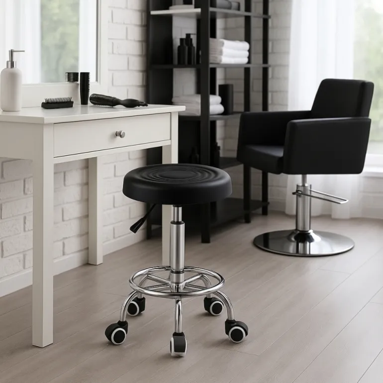 El taburete ROC combina estilo y funcionalidad en un diseño elegante y minimalista. Con su estructura ligera y compacta, este taburete es perfecto para espacios reducidos, permitiendo un fácil desplazamiento incluso en áreas estrechas. Las ruedas de alta calidad garantizan un rodado suave y seguro en todo tipo de superficies, incluyendo alfombras, madera dura y baldosas, protegiendo tus suelos de arañazos.
