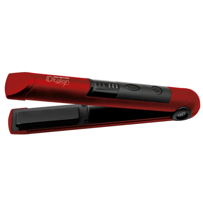 Plancha profesional de reducidas dimensiones especialmente indicada para pequeños trabajos como flequillos. El peine integrado en ambas placas permite peinar el cabello al tiempo que se alisa. Está preparada para su uso sin cable. La batería aguanta 45 minutos utilizando la máxima potencia de la plancha (205º C). Se carga a través de puertos USB conectado a cualquier dispositivo.